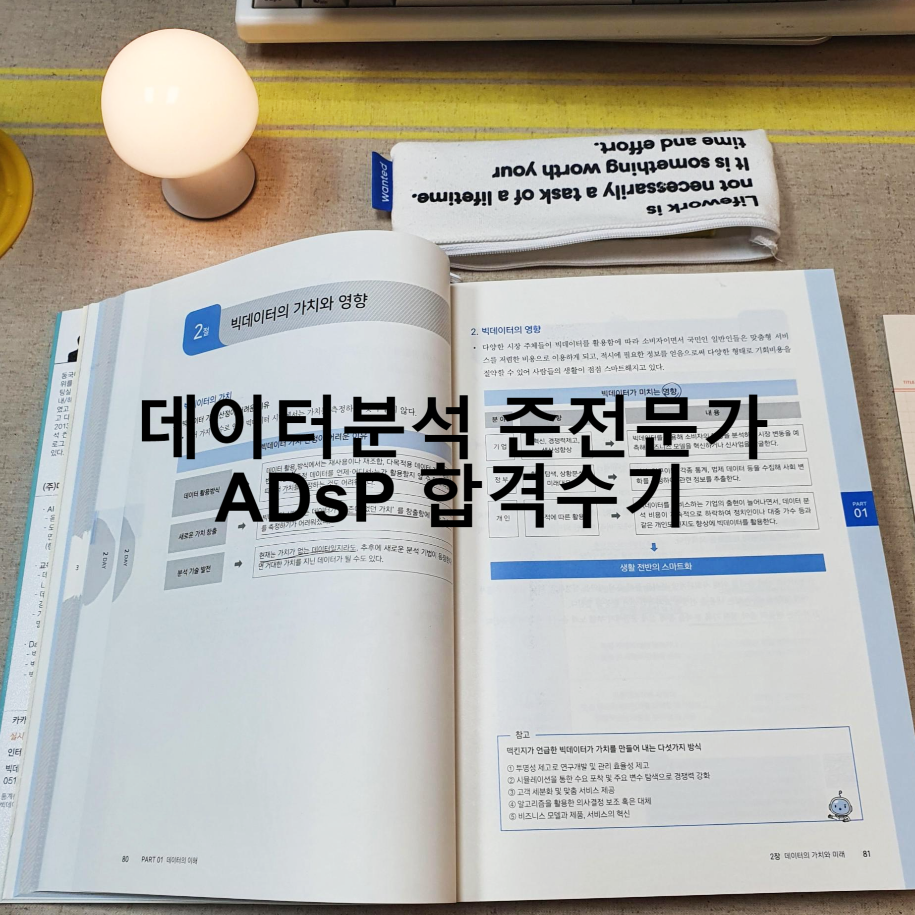 회사에서 빅데이터를 분석한 보고서를 많이 공유받고있는데 그래프, 구성내용이 낯설어서 도저히 보고서가 읽히지 않았다. 데이터 분석에 필요한 자격증을 공부해야겠다고 새해다짐을 했다. 기획자가 공부하면 좋을만한 빅데이터 자격증을 알아보았다. 비전문가도 한달정도 공부해서 취득할 수 있는 자격증이라고 해서 ADsP 자격증을 준비하게 되었다. 사실 SQL 자격증을 취득하고 싶었는데, ADsP 자격증 취득 후 SQL 자격증을 준비하는게 공부순서가 맞다고해서 ADsP에 도전했다.